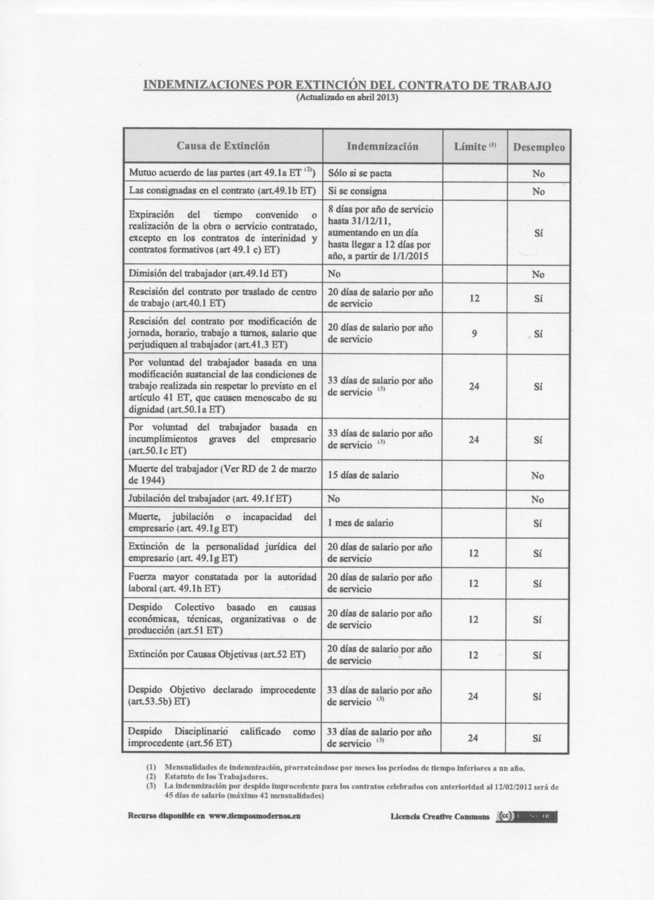 Tabla de indemnizaciones (actualizado 18/04/2013)